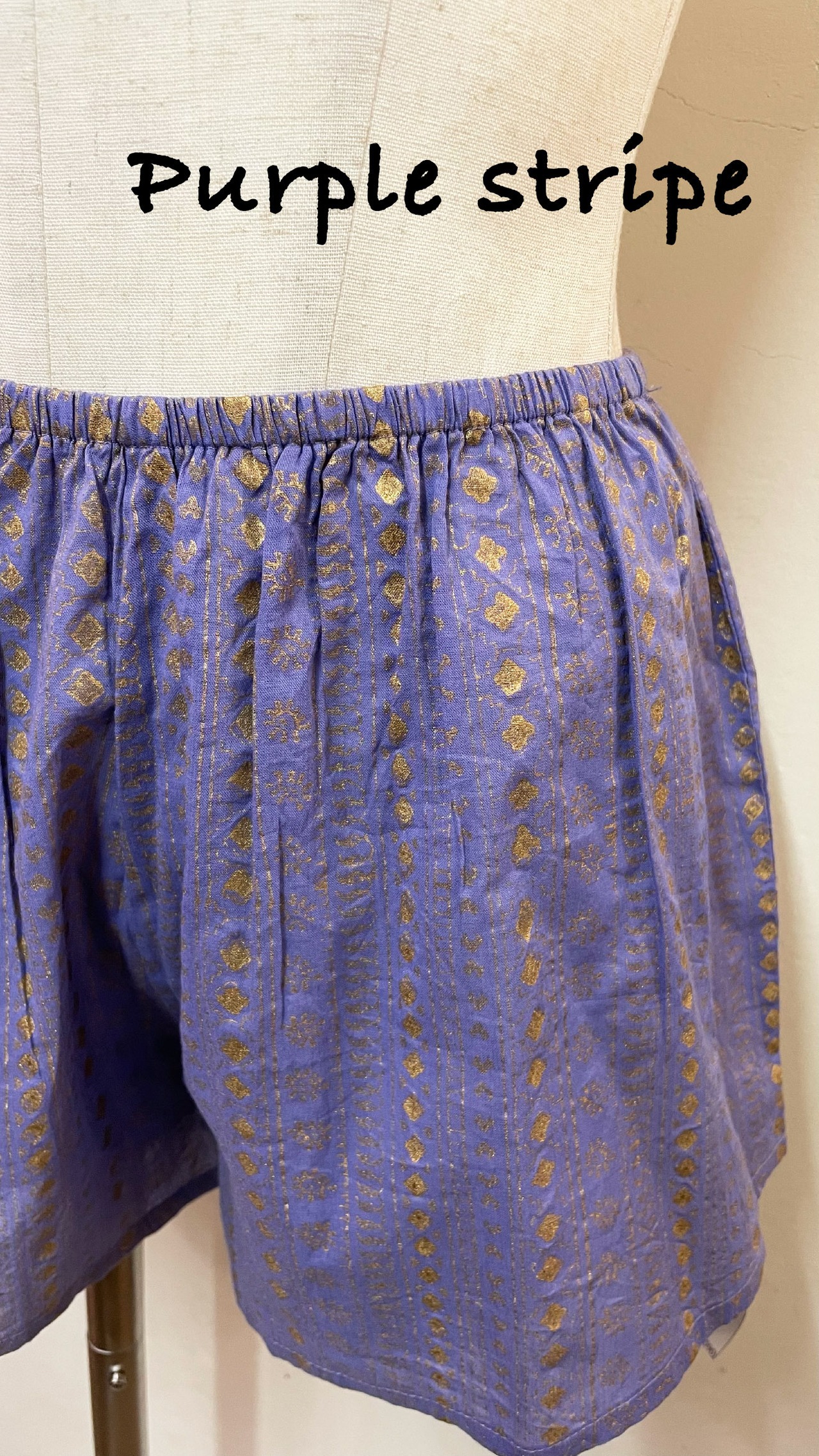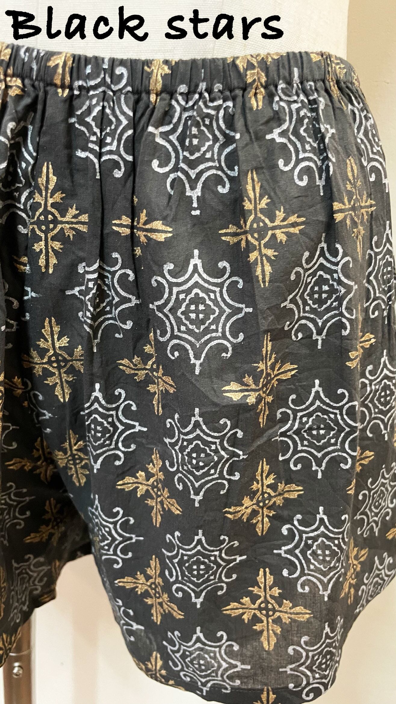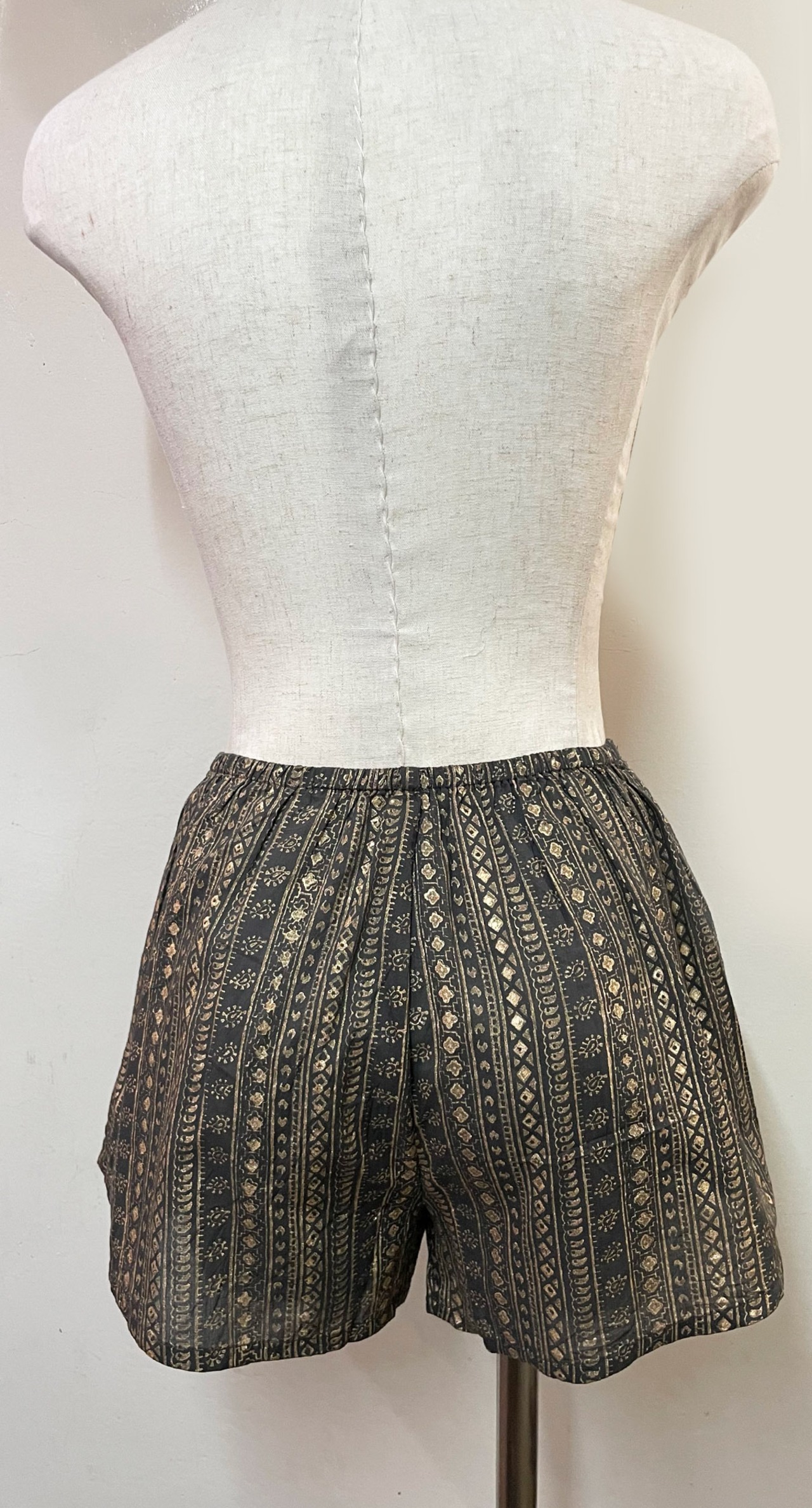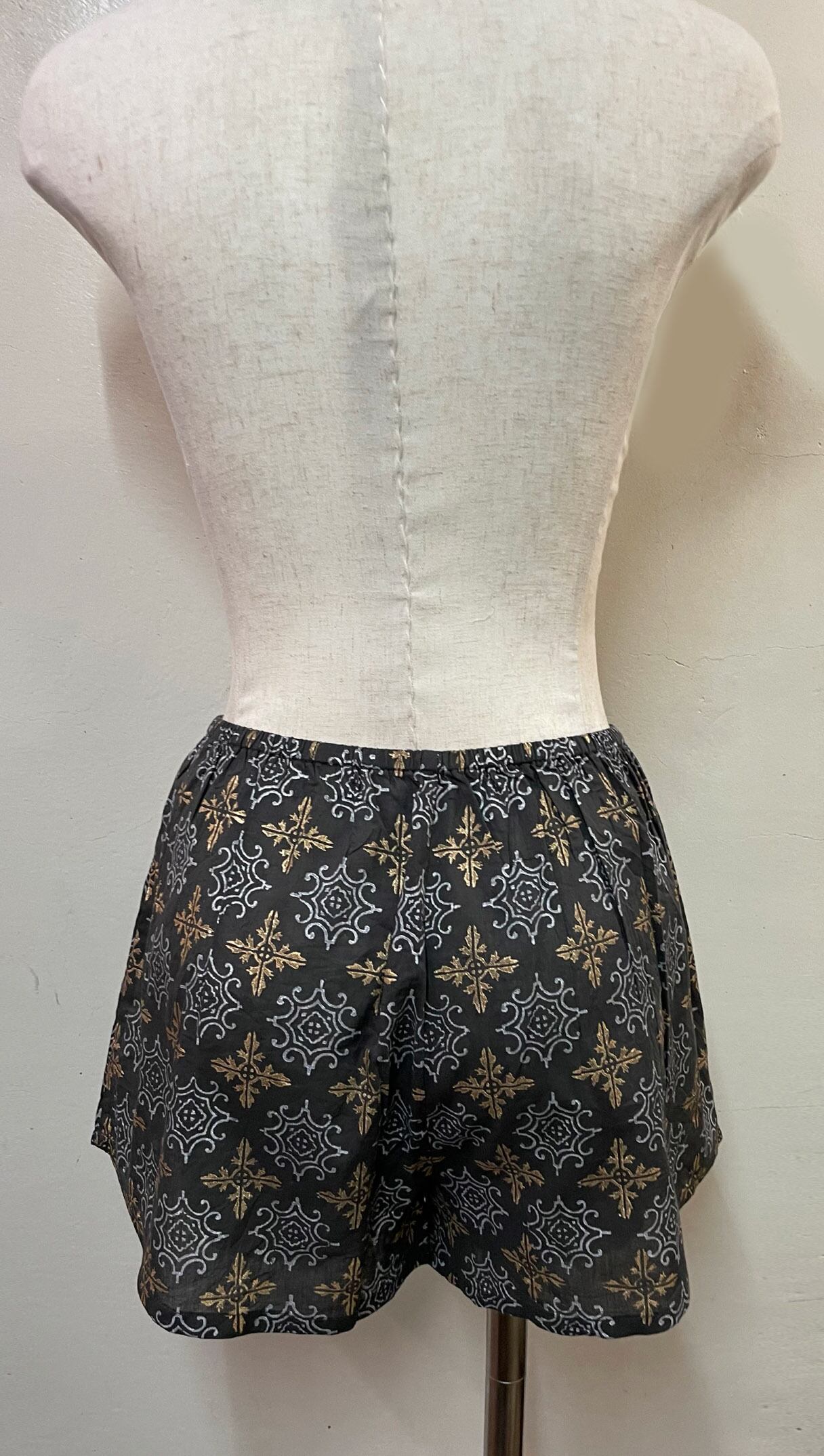 ゴールドやシルバーの箔プリントが魅力のミニパンツです。