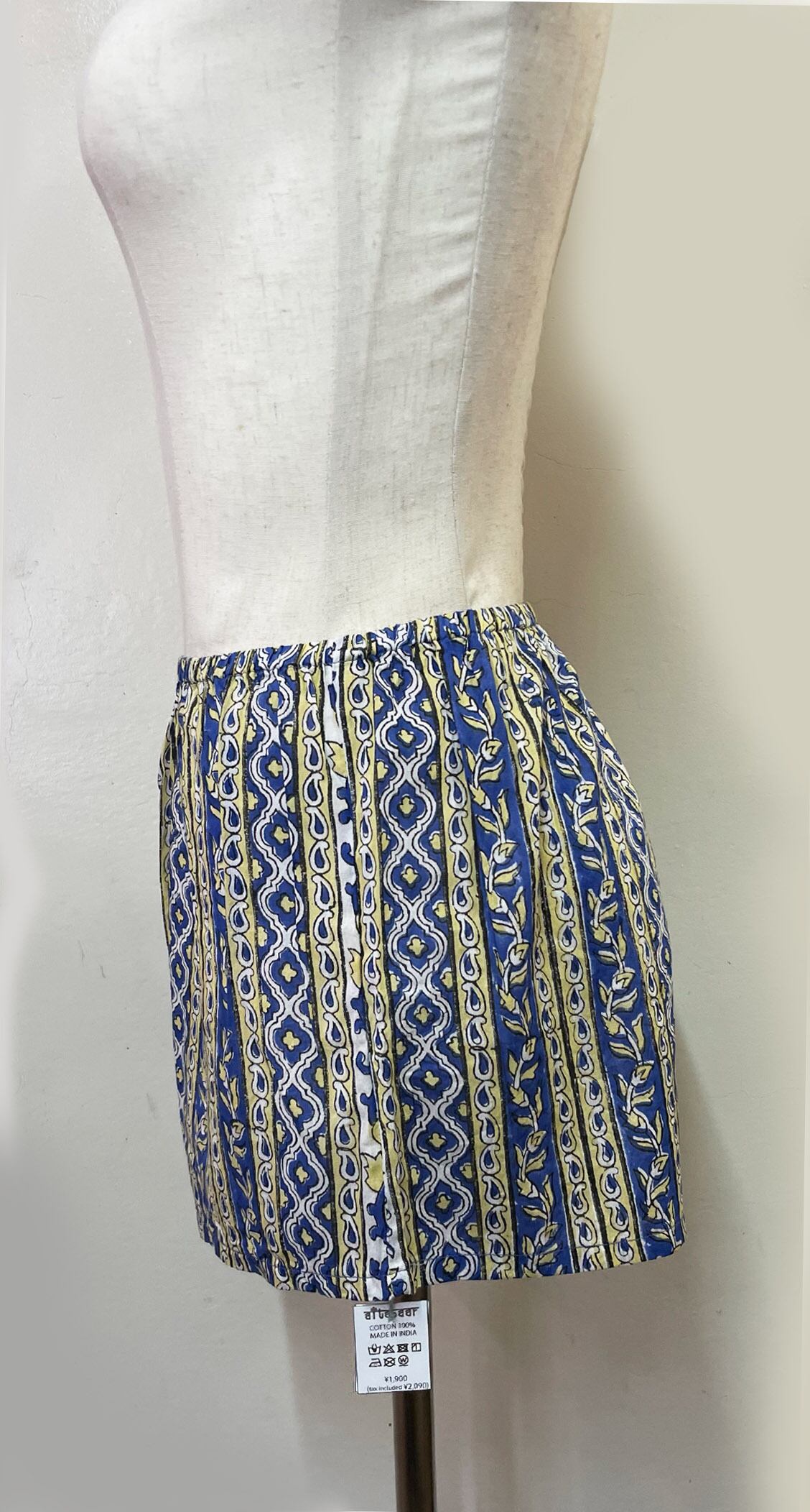 ブロックプリントのミニパンツです。