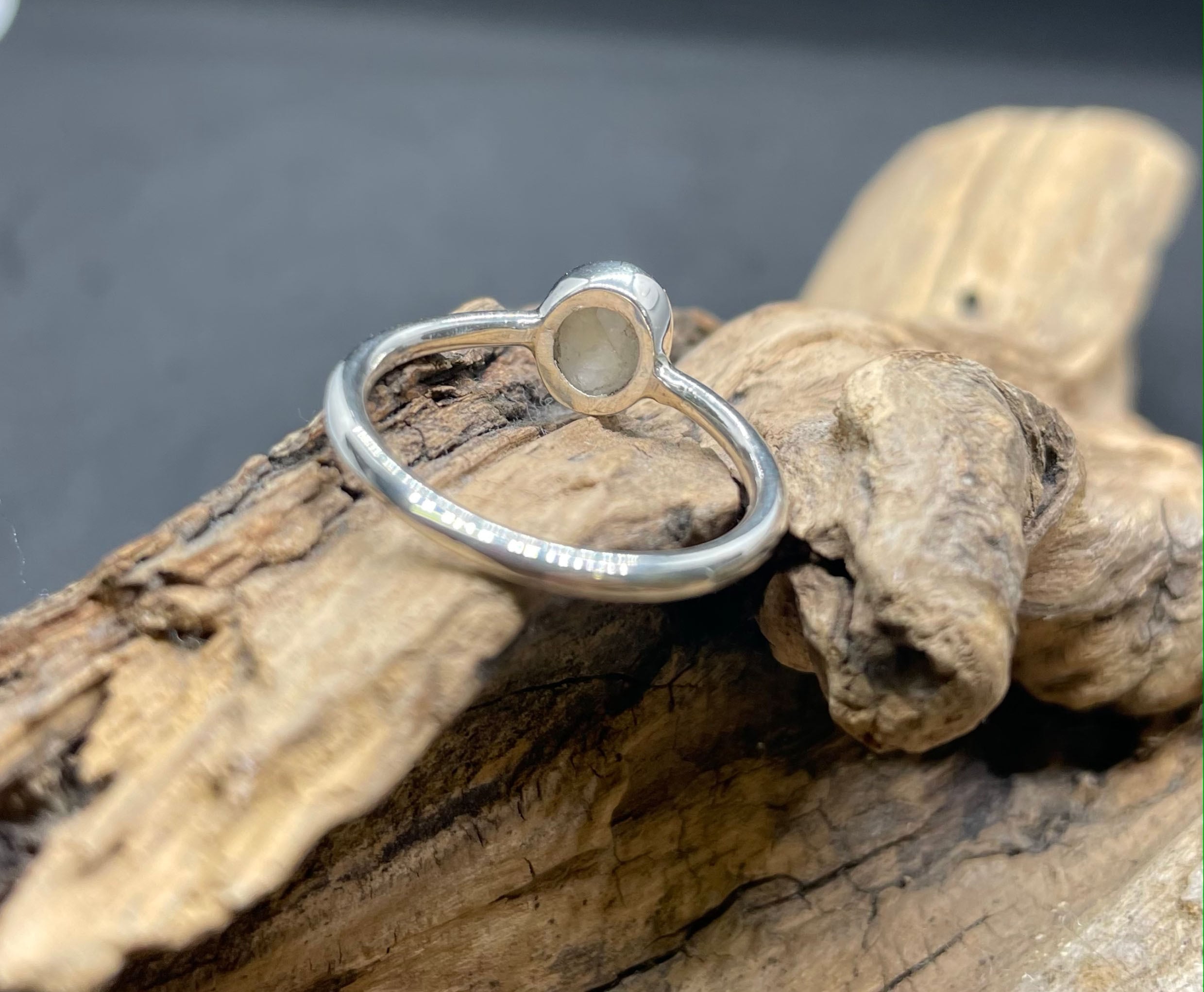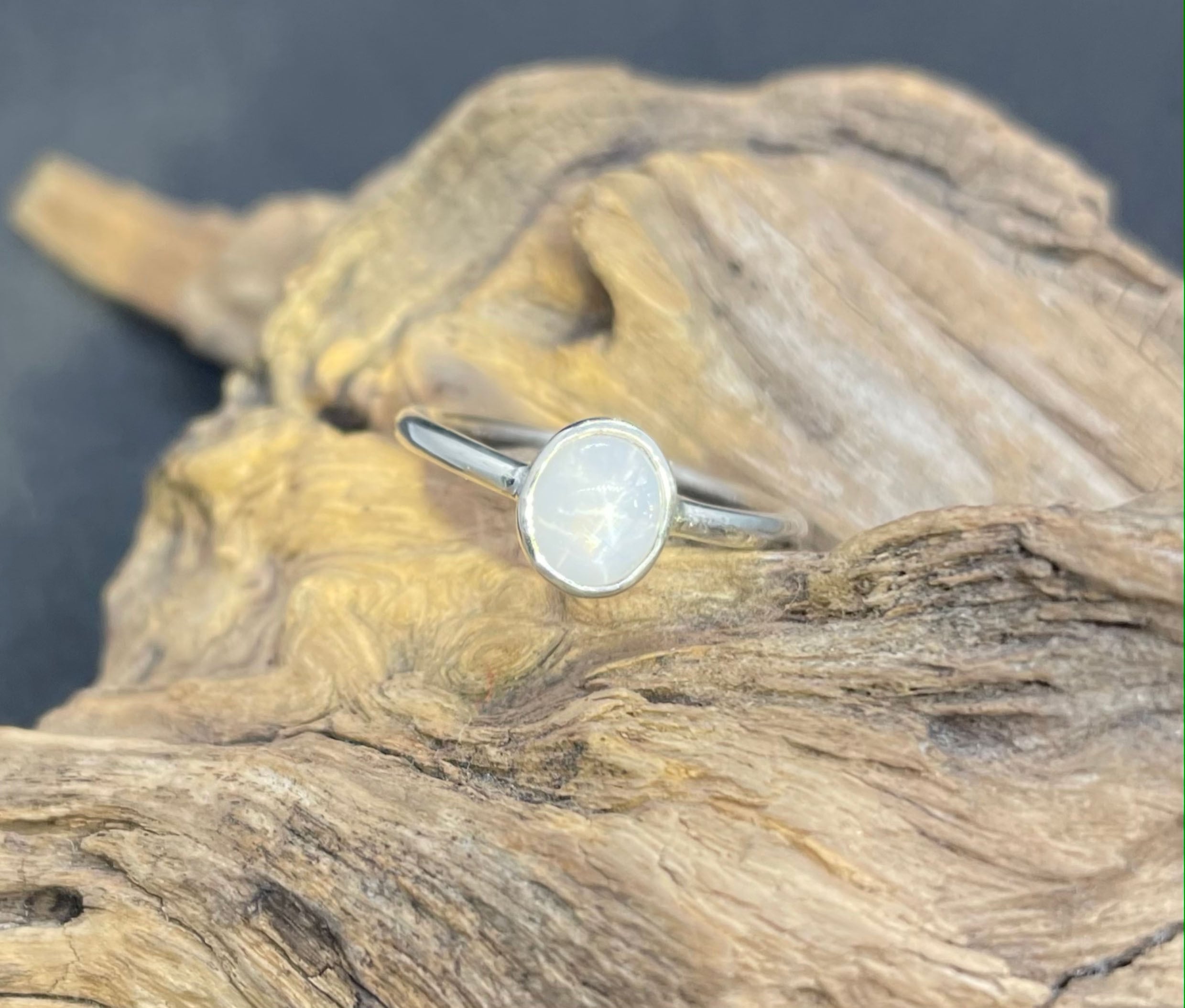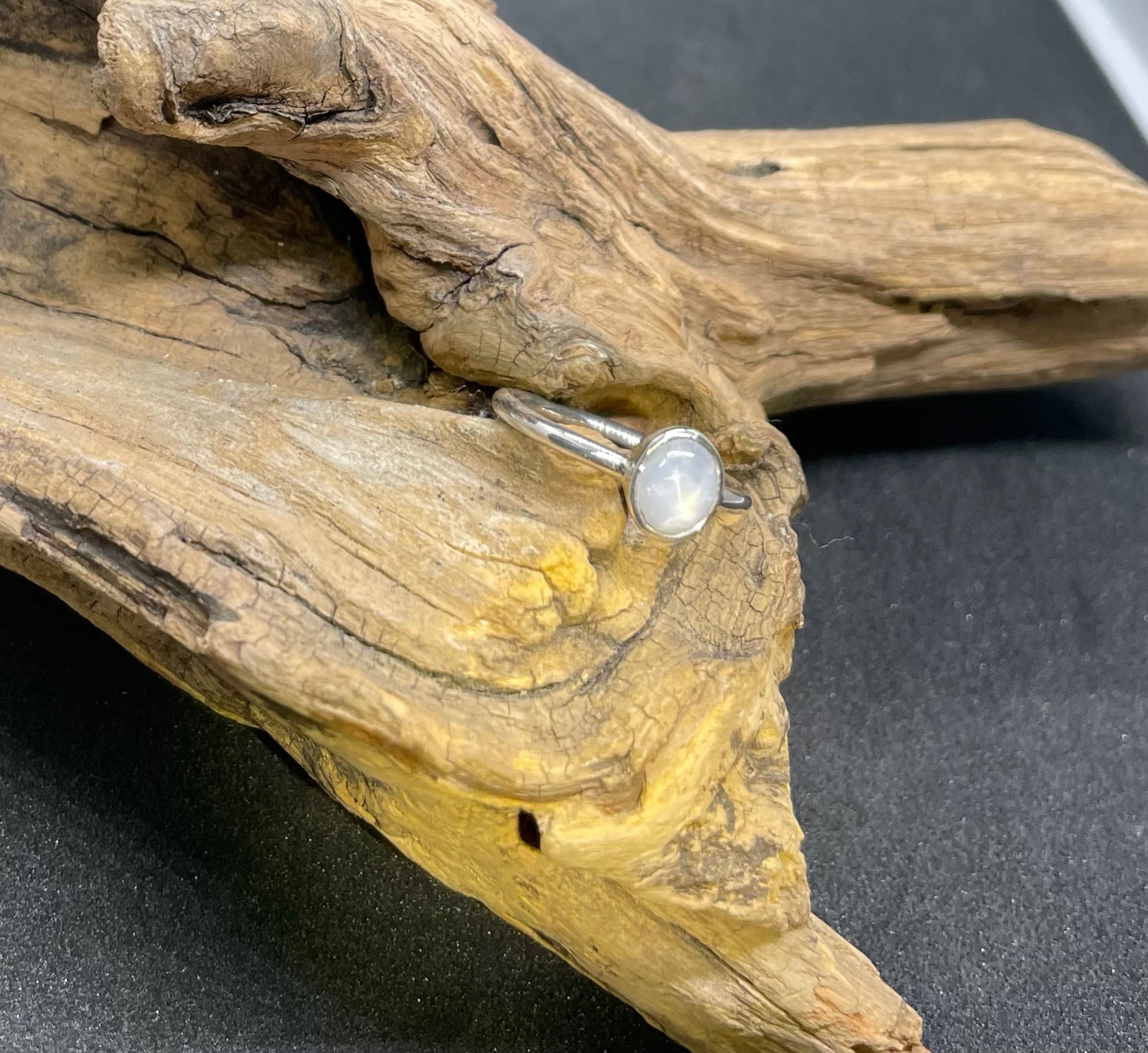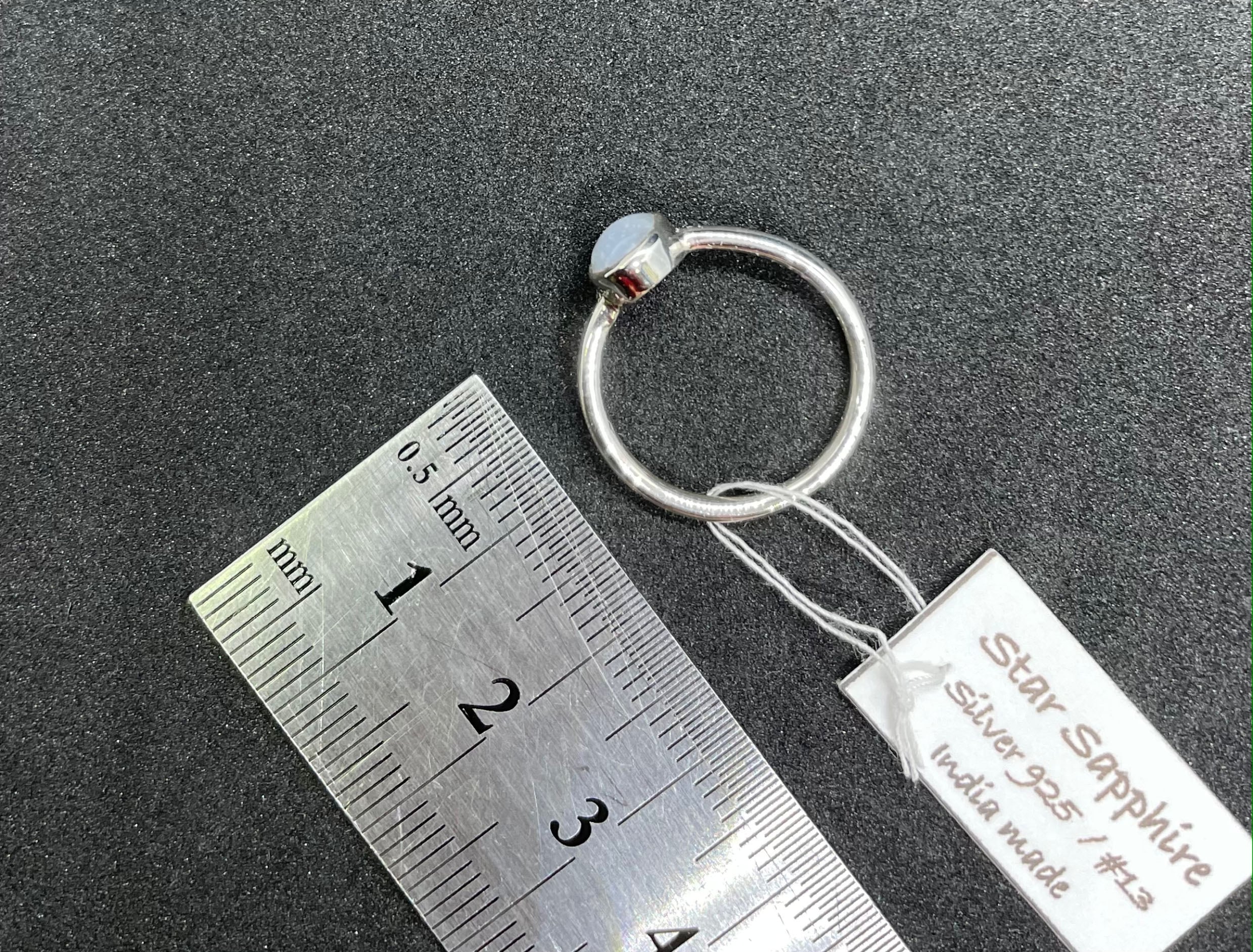 ホワイトスターサファイアの天然石とシルバー925台座のリングです。