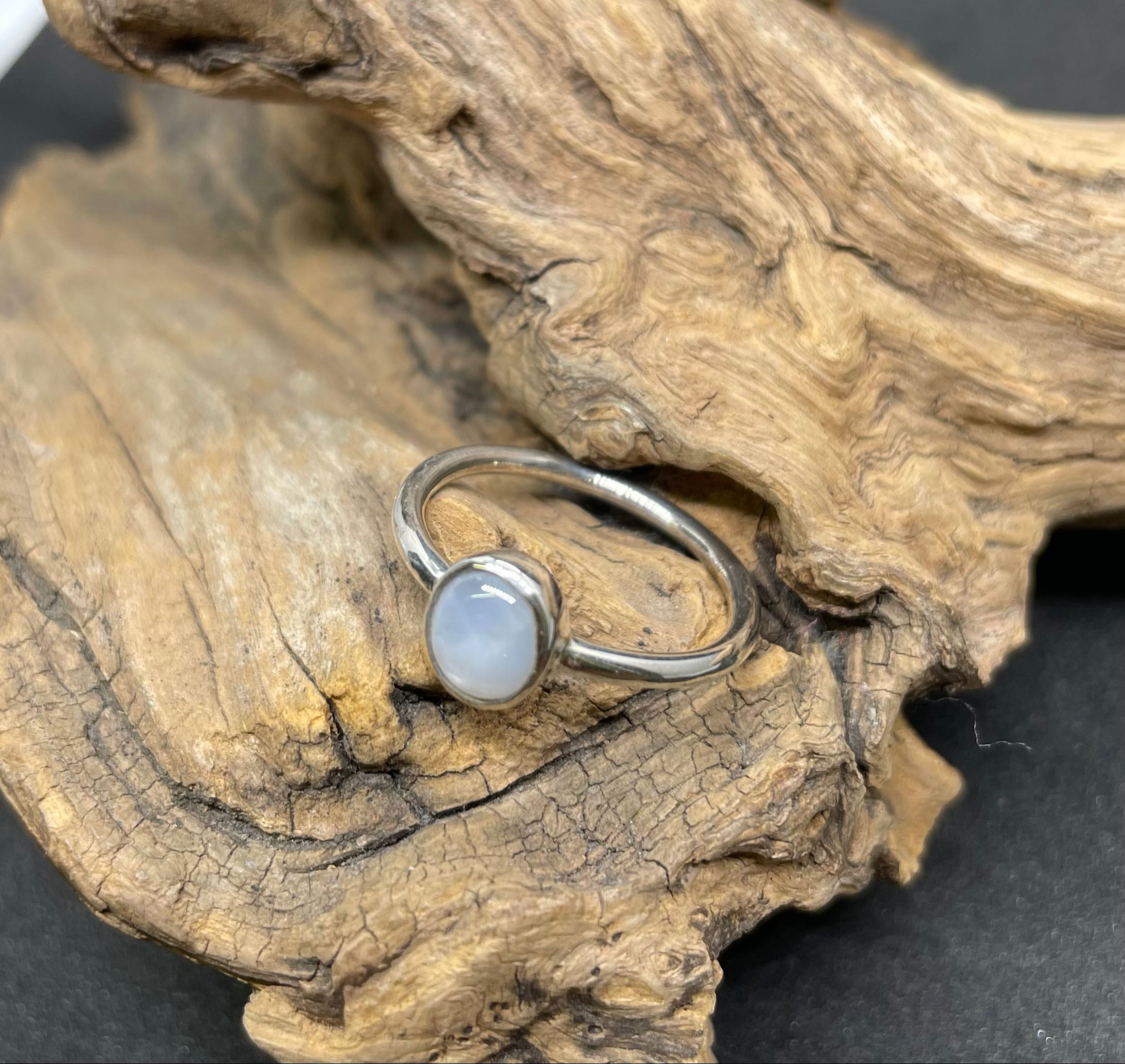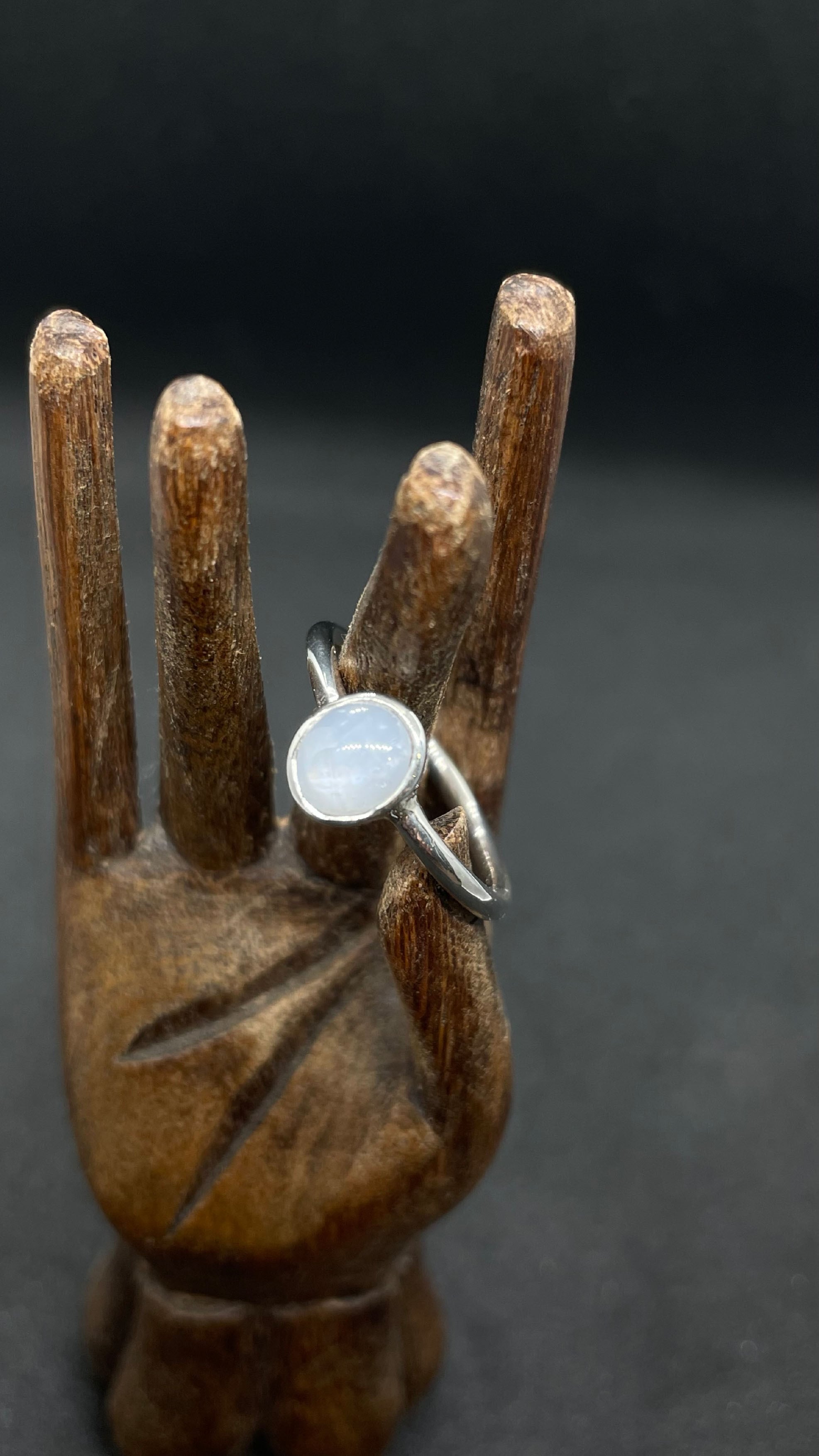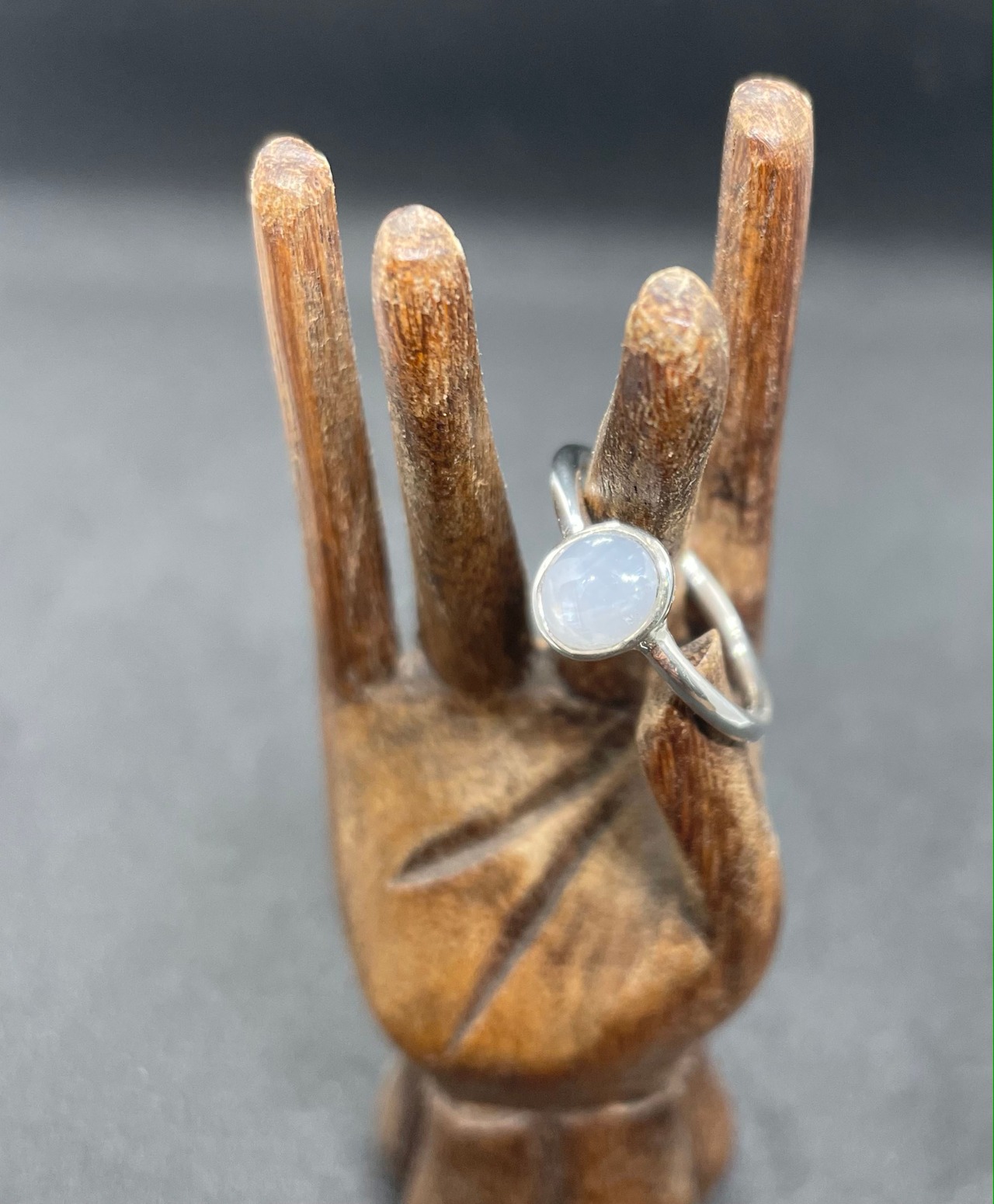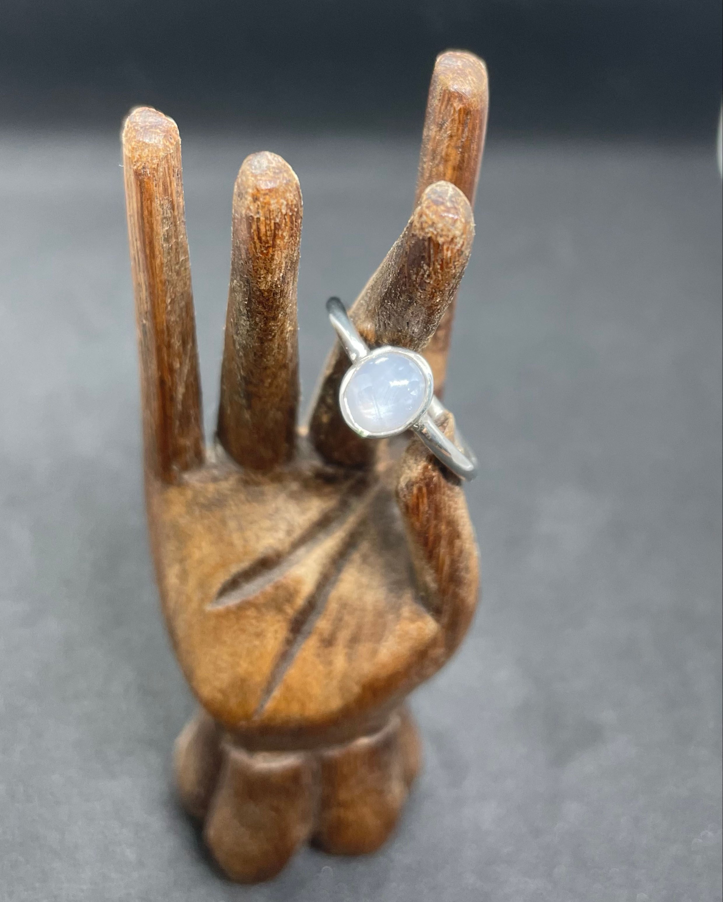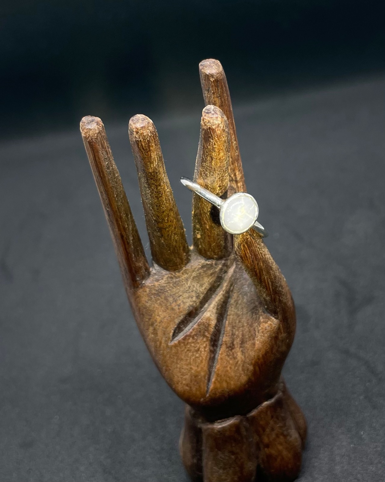 ホワイトスターサファイアの天然石とシルバー925台座のリングです。