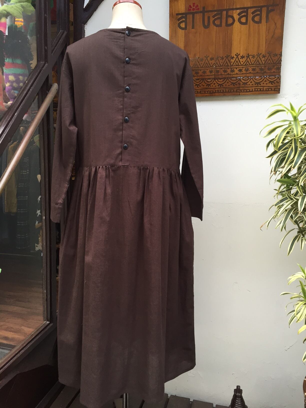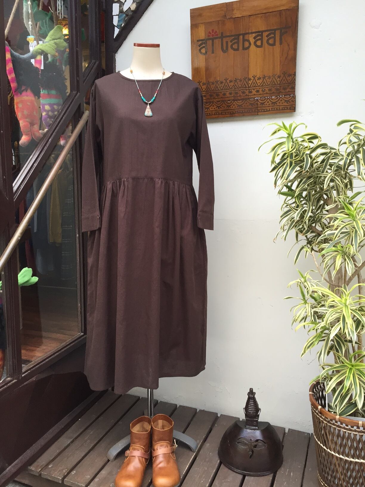 ナチュラルな風合いのリネンコットンのギャザー入りワンピース。